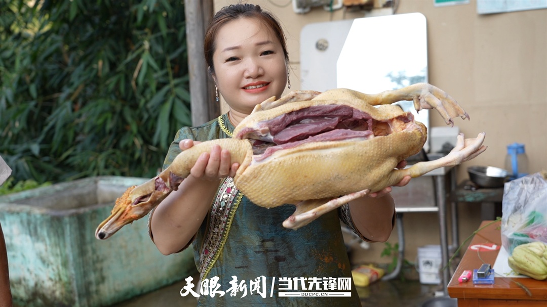 梁绍清的女儿洗好鸭子。