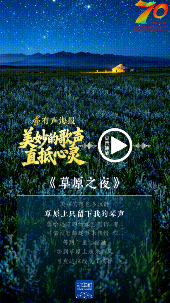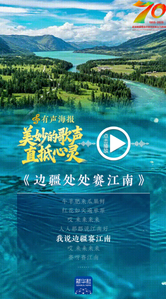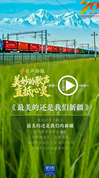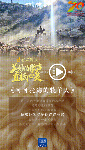 从《边疆处处赛江南》到《我们的祖国是花园》,从《吐鲁番的葡萄熟了》到《可可托海的牧羊人》,那些直抵心灵的新疆歌儿,飘过草原沙漠,穿越雪山绿洲,淌过流金岁月,回响于神州大地。新疆维吾尔自治区成立70周年之际,我们推出这组有声海报,一起跟随这些经典旋律,倾听天山南北的沧桑巨变和经济社会发展的时代交响。