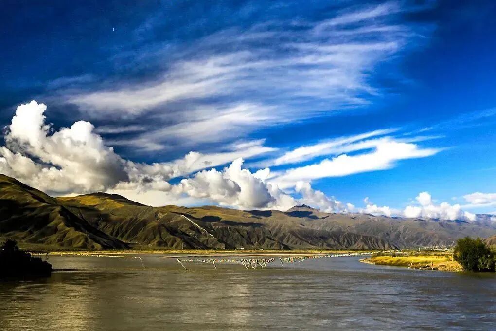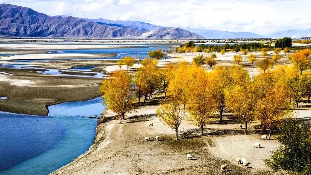 秋天的雅鲁藏布江冷静沉稳,和夏天的奔腾滂沱完全是两个性子。