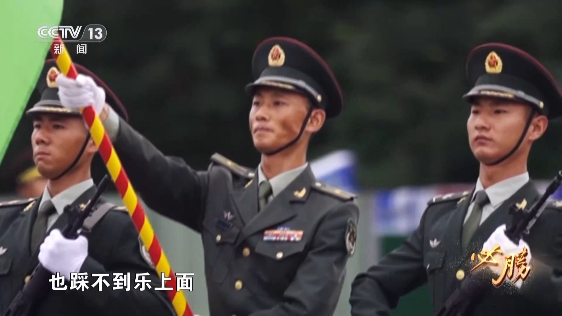 陆军方队擎旗手马瑞介绍,踢正步的脚步声很明显, 踩不到一个点上,也踩不到乐上面。