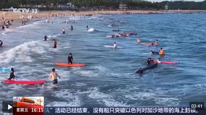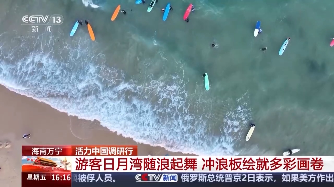 总台记者 范珊珊:我身在国内最著名的冲浪胜地之一——万宁日月湾的沙滩。在这段不到2公里的沙滩上,聚集了将近上千名游客,他们中的许多人就是专程来到这里学习、体验冲浪。