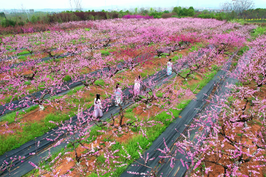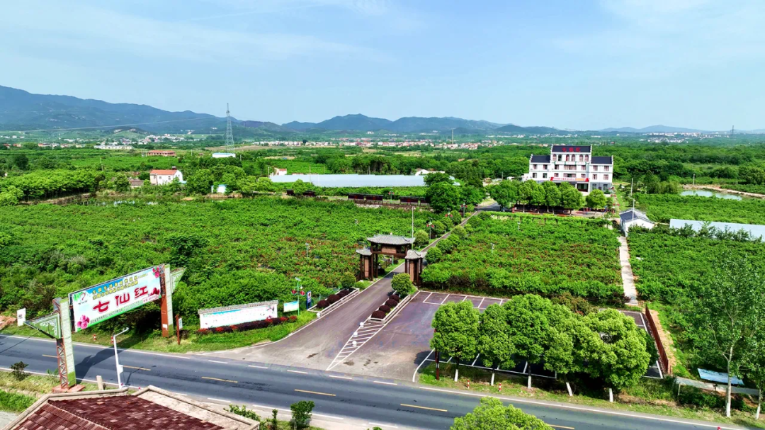 七仙红桃园位于孝昌县丰山镇,这里依托华中农业大学技术支撑,建成了全国领先的红肉桃全产业链体系。丰山镇在2024年获评全国农业产业强镇,逐渐成为全省乃至全国的红肉桃核心产区。