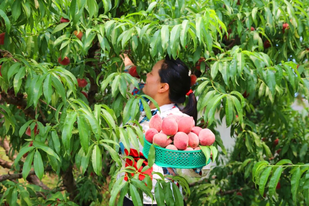 嚯!这漫山遍野的桃树,简直是现实版的“蟠桃盛会”!(猛咬一口飙出桃汁)这桃子!可太绝了!科技兴农真正让乡亲们过上了甜滋滋的日子!!