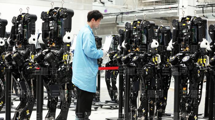 上海首座人形机器人量产工厂,工程师在调试人形机器人。图/中新社记者 汤彦俊 摄