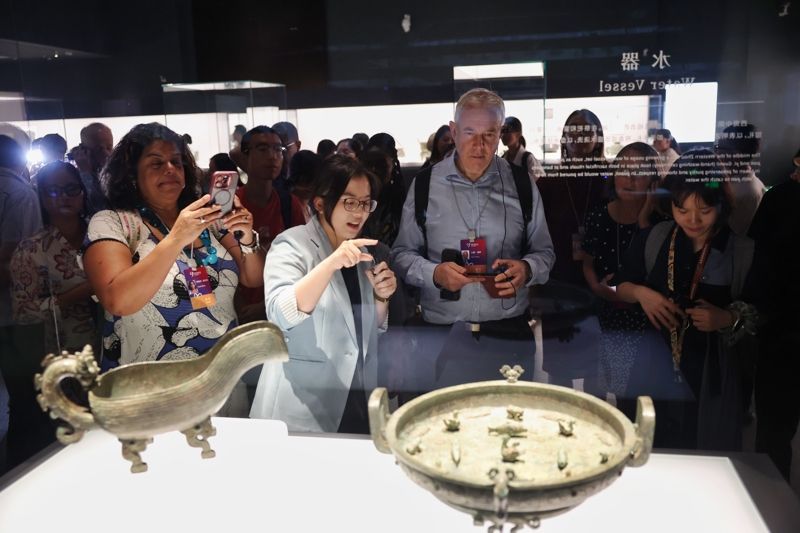 突尼斯迦太基大学讲师本·赫力法·法杜娃在商父乙觥前驻足良久:“他们让三千年前的酒器与现代人产生共鸣,这种古今融合的能力令人惊叹。”她分享在突尼斯,中国文化已成为备受关注的焦点。