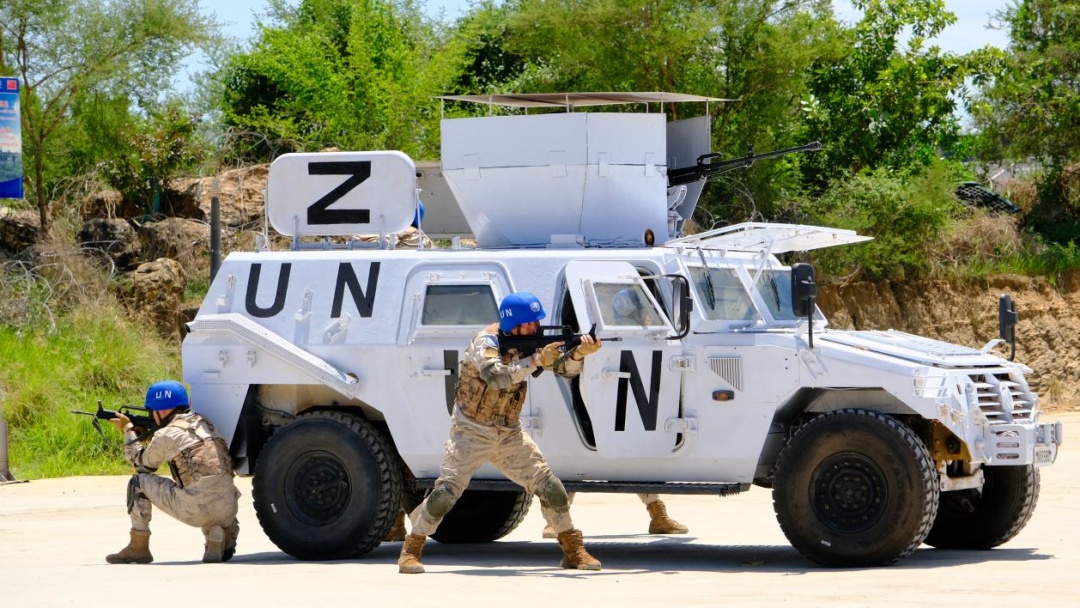 2023年,“刘老庄连”维和官兵正在进行班组战斗动作课目演示。任郭洋 摄