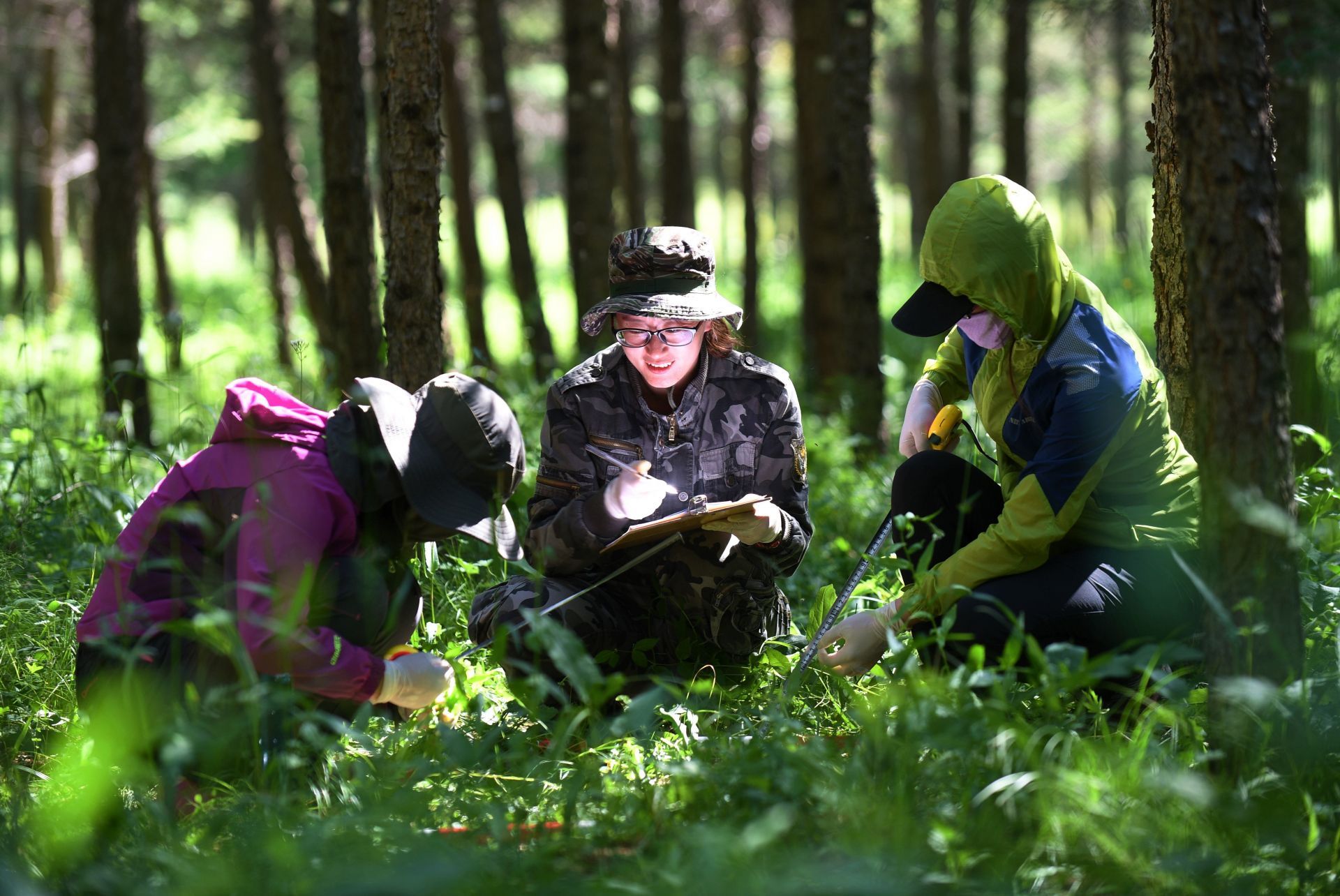 工作人员在河北塞罕坝机械林场采集数据。新华社记者 王晓 摄