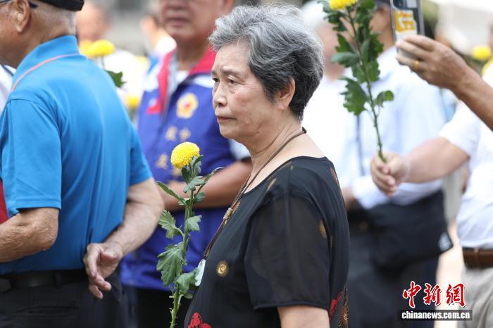 2025年9月3日是抗战胜利纪念日,台湾民间团体当天在台北市中山堂广场举行抗战胜利80周年纪念活动,缅怀先贤的牺牲奉献,呼吁正视历史、珍爱和平。图为台湾抗日志士罗福星的孙女罗秋昭出席活动,向抗战中牺牲的军民同胞敬献鲜花。记者 朱贺 摄