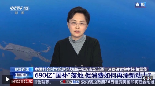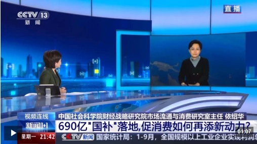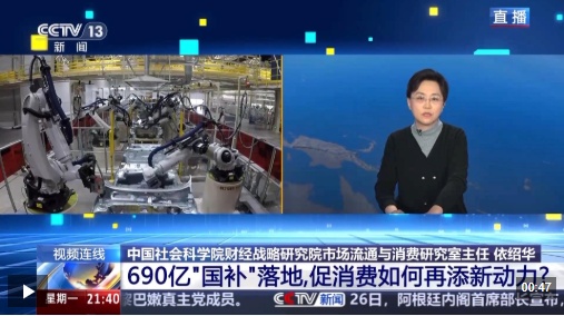 中国社会科学院财经战略研究院市场流通与消费研究室主任 依绍华:从目前的使用效果来看,有3.3亿人次申领了消费品的以旧换新补贴,汽车的以旧换新补贴申领超过了1000万份。
