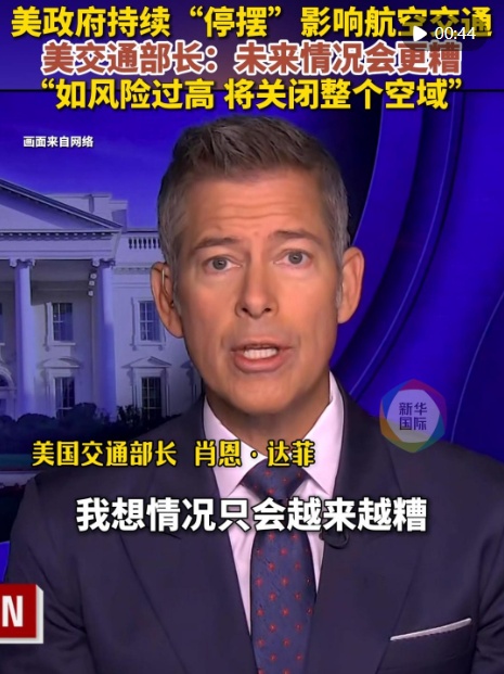 美国交通部长肖恩·达菲3日接受媒体采访时说,未来情况会越来越糟,很多空管人员已经一个多月没领到薪水,他们正面临选择:是想办法解决家人温饱,还是继续为政府无偿工作。