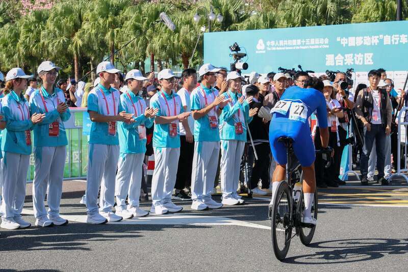 中国青年报客户端讯( 陈奕樊 中青报·中青网记者 武欣中)第十五届全国运动会自行车(公路)赛日前在珠海鸣枪开赛,速度与激情之外,另一道风景同样动人,在赛场各处,1543名“小海豚”如同跃动的浪花汇聚成服务的海洋。从场地引导到物资分发,从竞赛服务到应急支持,他们的身影遍布赛场的各个角落,用微笑与行动诠释着“奉献、友爱、互助、进步”的志愿精神,为这场跨越粤港澳三地的体育盛会注入温暖而持久的青春能量。