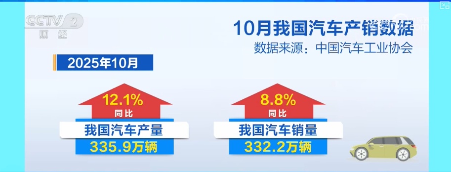 11月11日,中国汽车工业协会对外公布数据显示,10月,我国汽车产销量均超过330万辆,月度产销量创同期新高。汽车出口已经连续3个月超过60万辆。