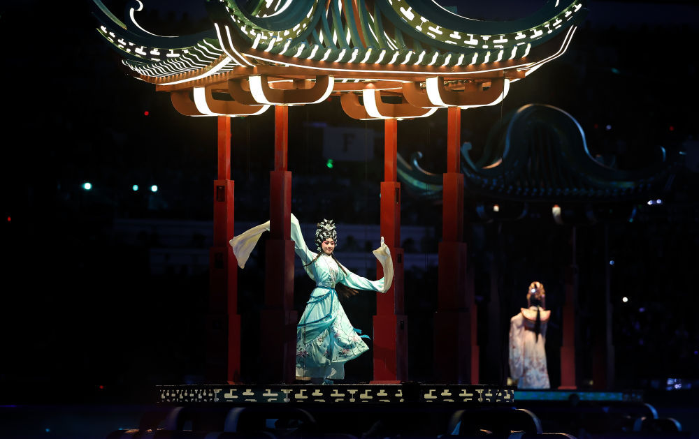 ↑11月9日,演员在开幕式现场表演。新华社记者 邓华 摄