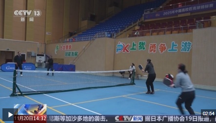 总台记者 谢元森:匹克球,我们可以把它看作一个镂空的塑料网球。它怎么玩?它就是在一个羽毛球场地上,用大号的乒乓球拍来打网球,它的规则要比以上的三种运动都要简单,普通人只要学习10多分钟就能轻松上手。