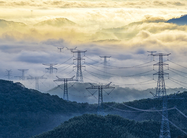 中国特高压线路穿梭青山云海