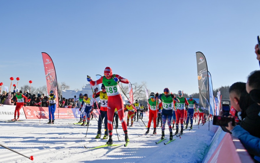 第23届中国⻓春净⽉潭瓦萨国际滑雪节在⻓春净⽉潭国家森林公园开幕。新华社记者 颜麟蕴 摄