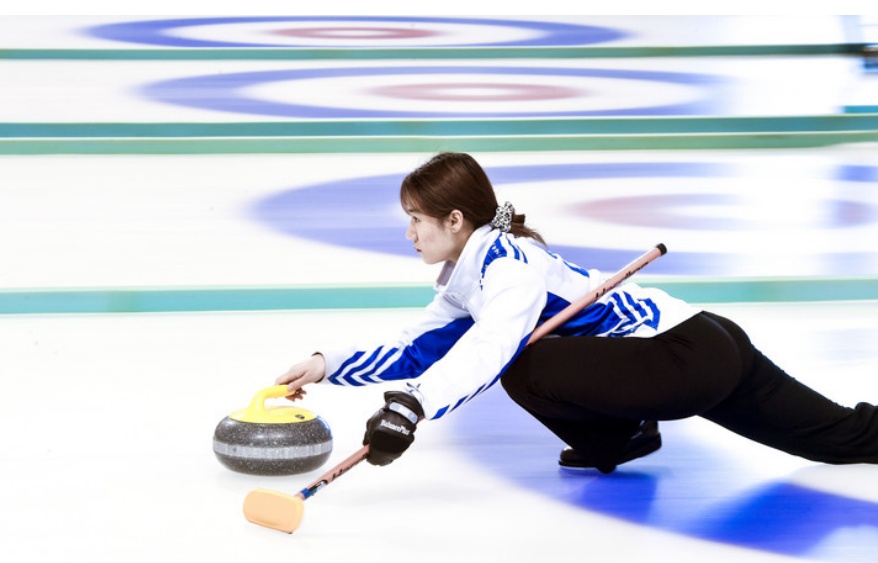 在吉林省“百万⻘少年上冰雪”推⼴活动上,⼀名冰壶选⼿在现场进⾏演示。新华社记者 许畅 摄