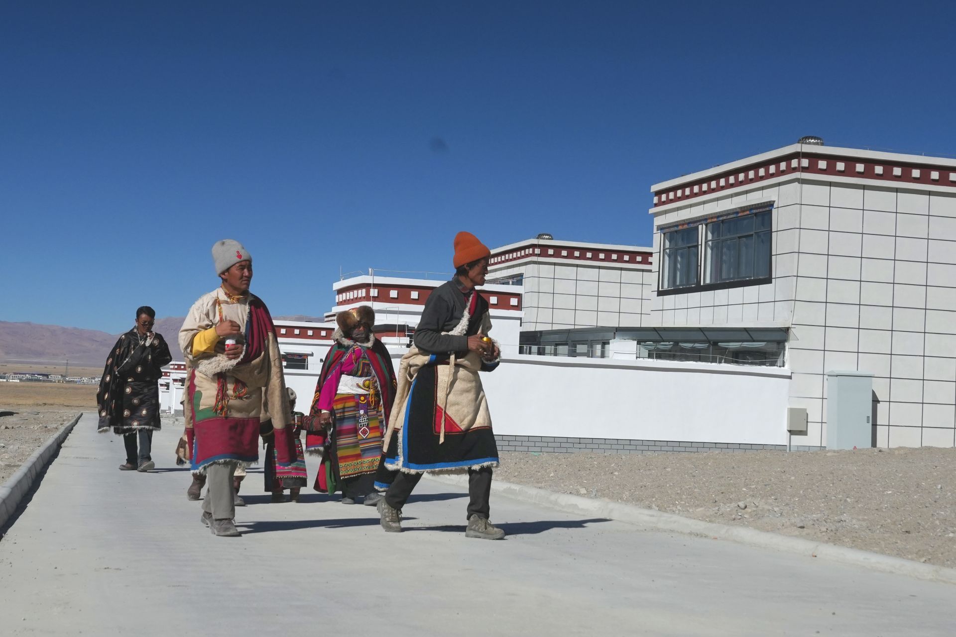 图为茶措村村民行走在新村平整的水泥路上,仔细辨认、寻找各自的新家,满是对新生活的期待。改则县融媒体中心摄