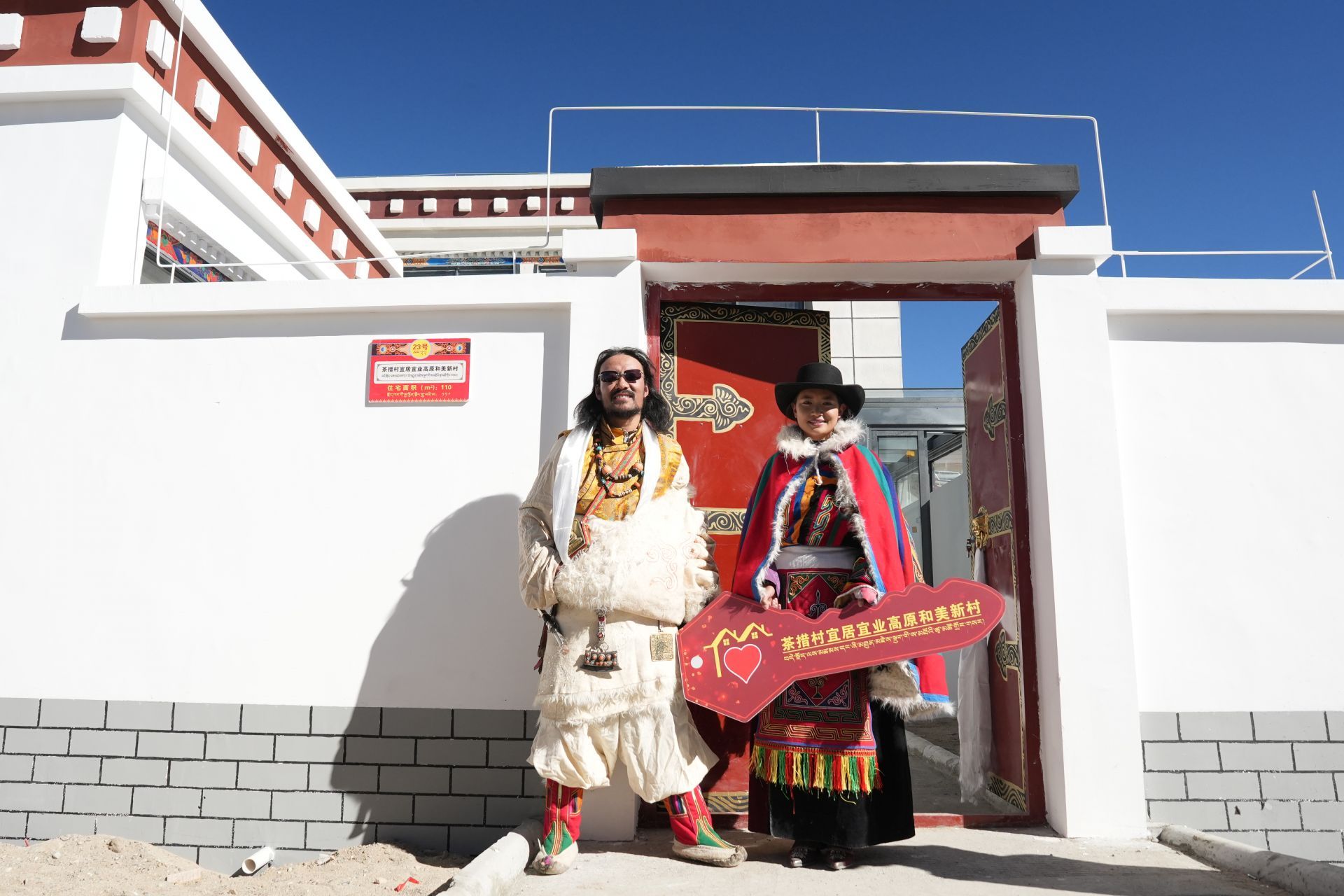 图为村民身着传统服饰,手持“茶措村宜居宜业高原和美新村”钥匙标识牌,脸上洋溢着对新生活的憧憬与喜悦。改则县融媒体中心摄