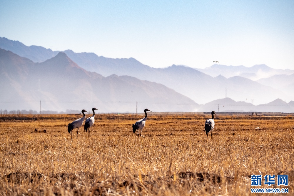 这是11月26日在西藏拉萨市林周县境内拍摄的黑颈鹤。新华网 旦增努布 摄