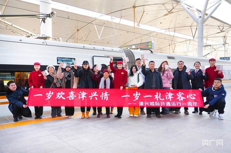 津兴城际铁路开通一周年活动合影(央广网记者 韩雨晨 摄)