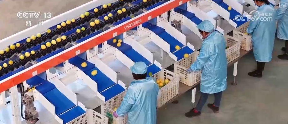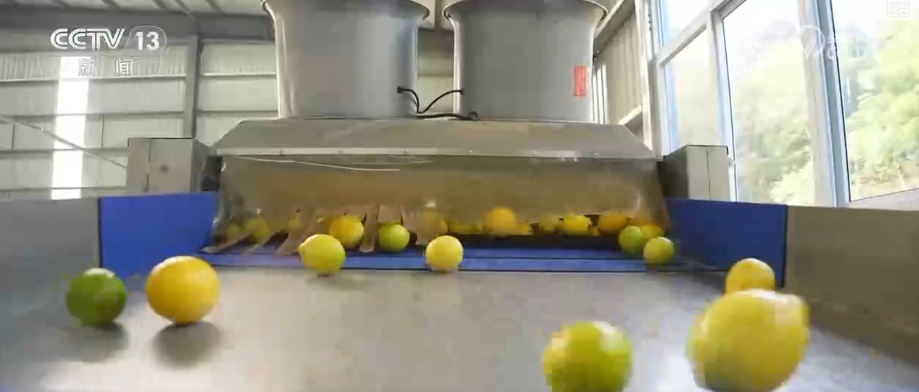 在四川简阳市雷家镇的一个柠檬园里,金黄饱满的柠檬采摘后,马上被送到果园附近的柠檬出口基地,经自动化的清洗、分拣、包装,不出两小时柠檬就处理完毕。