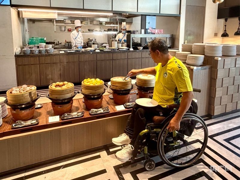 接待酒店餐厅对取餐处高度作出无障碍优化,方便轮椅人士取餐(央广网记者罗世伟 摄)