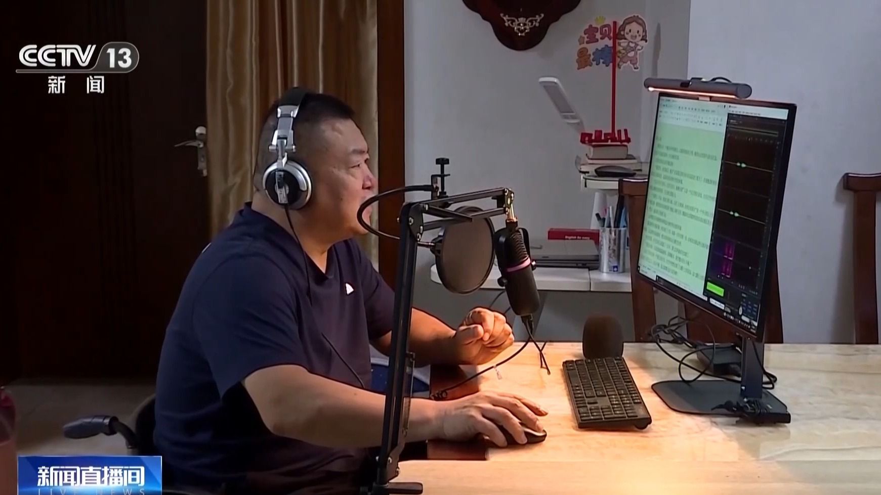 今年61岁的杨崇林,二十多年前因一场车祸致残,2021年,在黑龙江省残联的帮助下,他成为一名有声书主播。