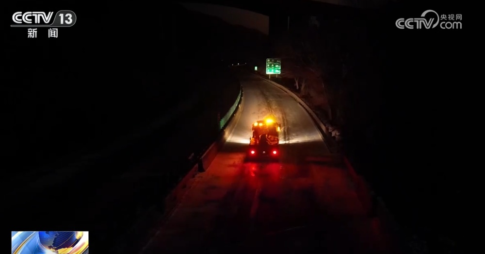在天黎高速、二广高速、呼北高速、京昆高速等高速部分路段,路面出现积雪结冰,执勤交警在加强巡护管控力度的同时,利用车载喊话和警报设备提醒过往车辆注意安全。