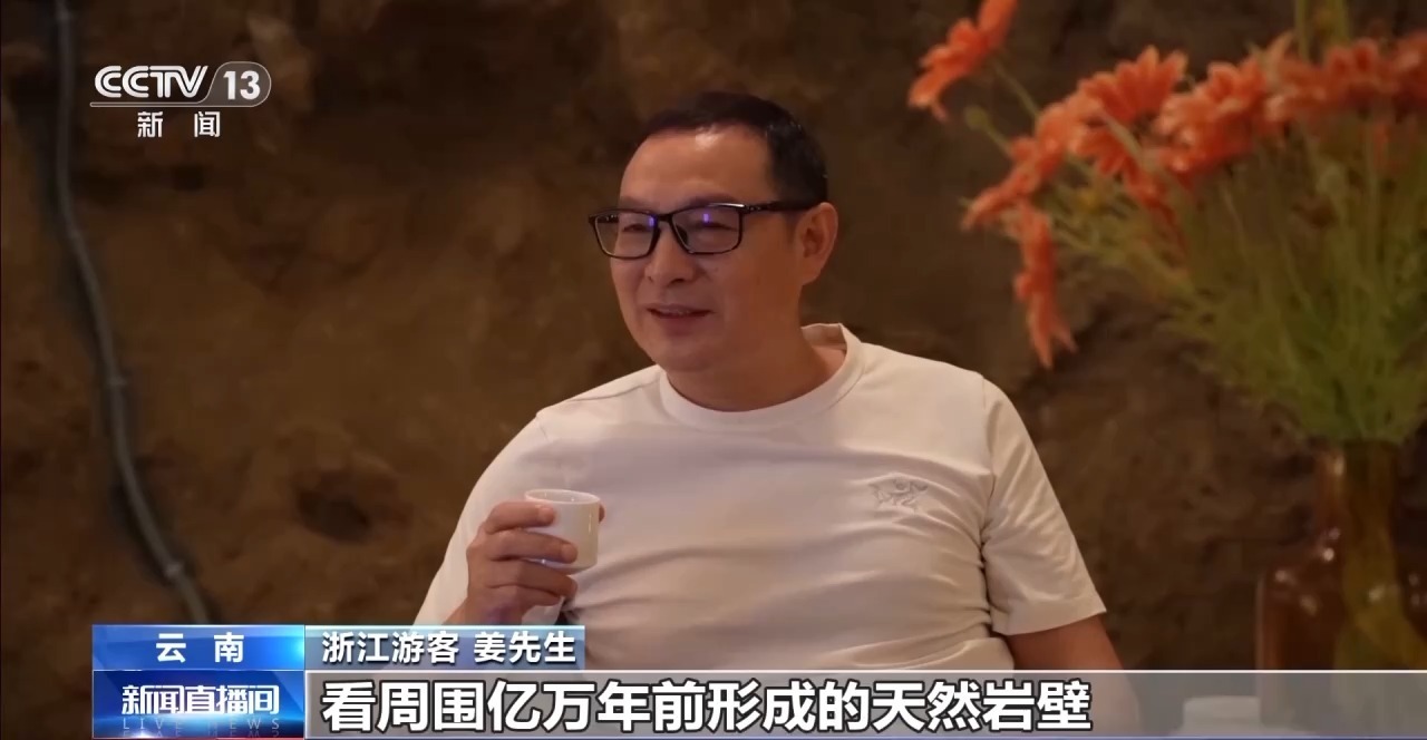 浙江游客 姜先生:喝着咖啡,看周围亿万年前形成的天然岩壁,感觉特别奇妙,特别放松。来怒江玩,这个地方值得专门坐会儿。