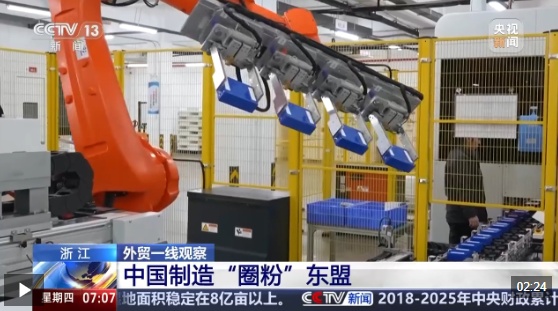 宁波的一家机器人加工车间,工人们正加紧生产发往马来西亚的半导体晶圆检测仪。这款产品凭借高精度、小体积的核心优势,在东盟市场颇受青睐。