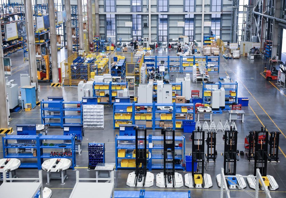 这是位于嘉兴市南湖区嘉兴科技城的浙江一家科技集团股份有限公司的智能物流机器人装配和检测车间(2024年5月15日摄)。近年来,浙江省嘉兴市南湖区坚持以创新驱动高质量发展,打造高起点科创带,集聚了一批高端科创平台,持续深化“院地合作”,不断提升微电子、智能装备、生物医药等高新技术产业集聚,积极推进高新技术产业发展。新华社记者 徐昱 摄