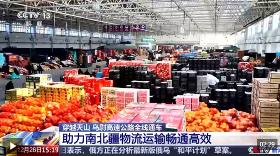 总台记者 卜鹏:乌鲁木齐市的九鼎农产品批发交易市场,是新疆最大的农产品批发交易市场,目前整个市场有2000多个商铺和摊位,每年的交易量可以超过200万吨。这个市场距离乌尉高速公路路线起点位置大概有20公里。