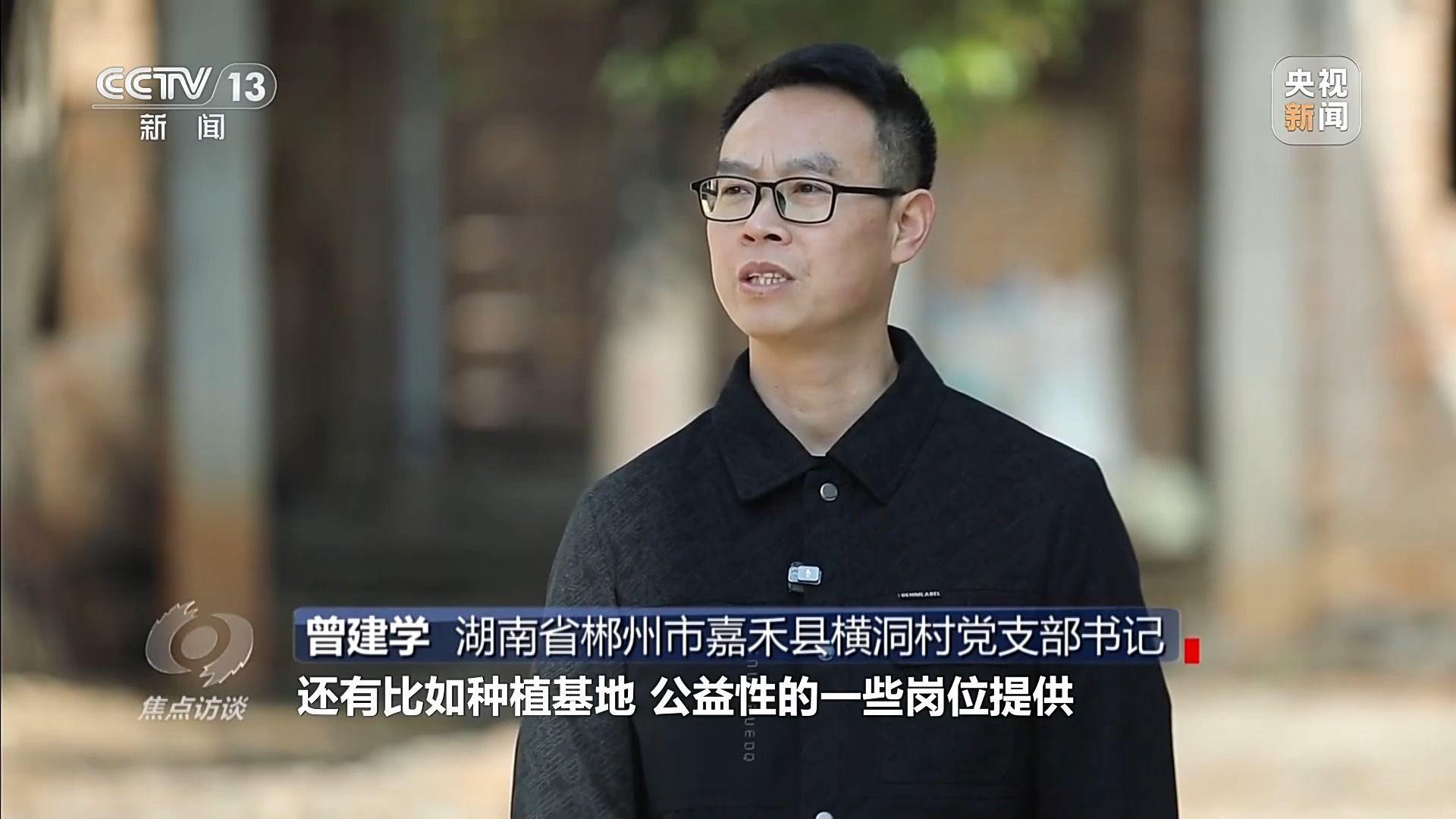 湖南省郴州市嘉禾县横洞村党支部书记 曾建学:不只是车间做事,还有种植基地、公益性的一些岗位提供,因为提供就业岗位只是起点,他们能不能适应,从而来获得稳定的收入,才是最终目的。