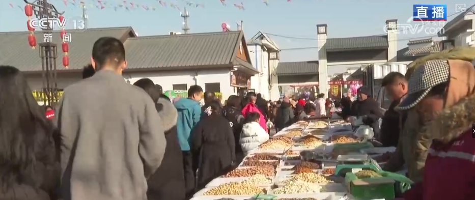 现在的金贵大集已经迎来了年前最忙的时候。放眼望去,400多个摊位铺得满满当当,从新鲜蔬果到瓜子糖果,从油饼馓子到牛羊肉集,走一圈就能把年货置办齐全。