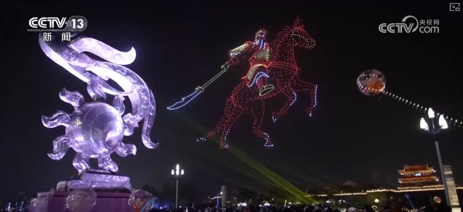 更有2026架无人机腾空而起,勾勒出“万马奔腾”“凤凰展翅”光影长卷,让游客惊叹。还有为古城墙披上斑斓外衣的荆风楚韵灯光秀,让大家赏心悦目。光影流转间,放佛历史与现代隔空对话。