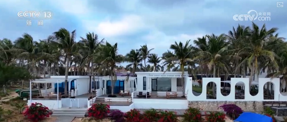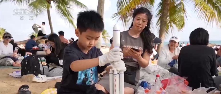 这里是文昌一处民宿后的沙滩上,隔海相望的位置就是文昌航天发射场的塔架。如今,火箭发射观礼已经成为海南一张独特的文旅名片。而不少游客会直接选择能够远眺发射场的民宿,在阳台或者来到沙滩直接看火箭发射升空。
