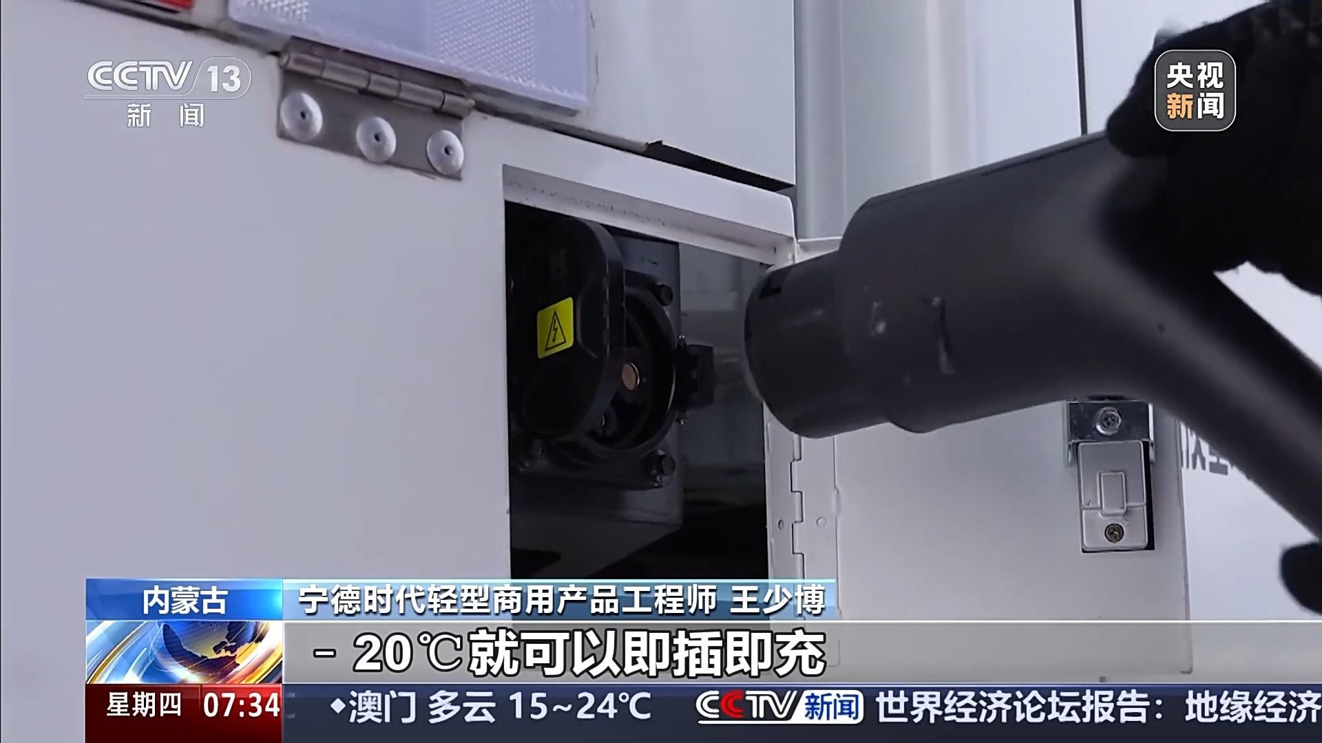 宁德时代轻型商用产品工程师 王少博:电池性能对比上一代的电池产品,-20℃就可以即插即充,它的充电效率也可以做到96%以上。同时再搭配底盘一体化技术,可以大幅地降低整车冬天的能耗,提升寒区的续航能力。