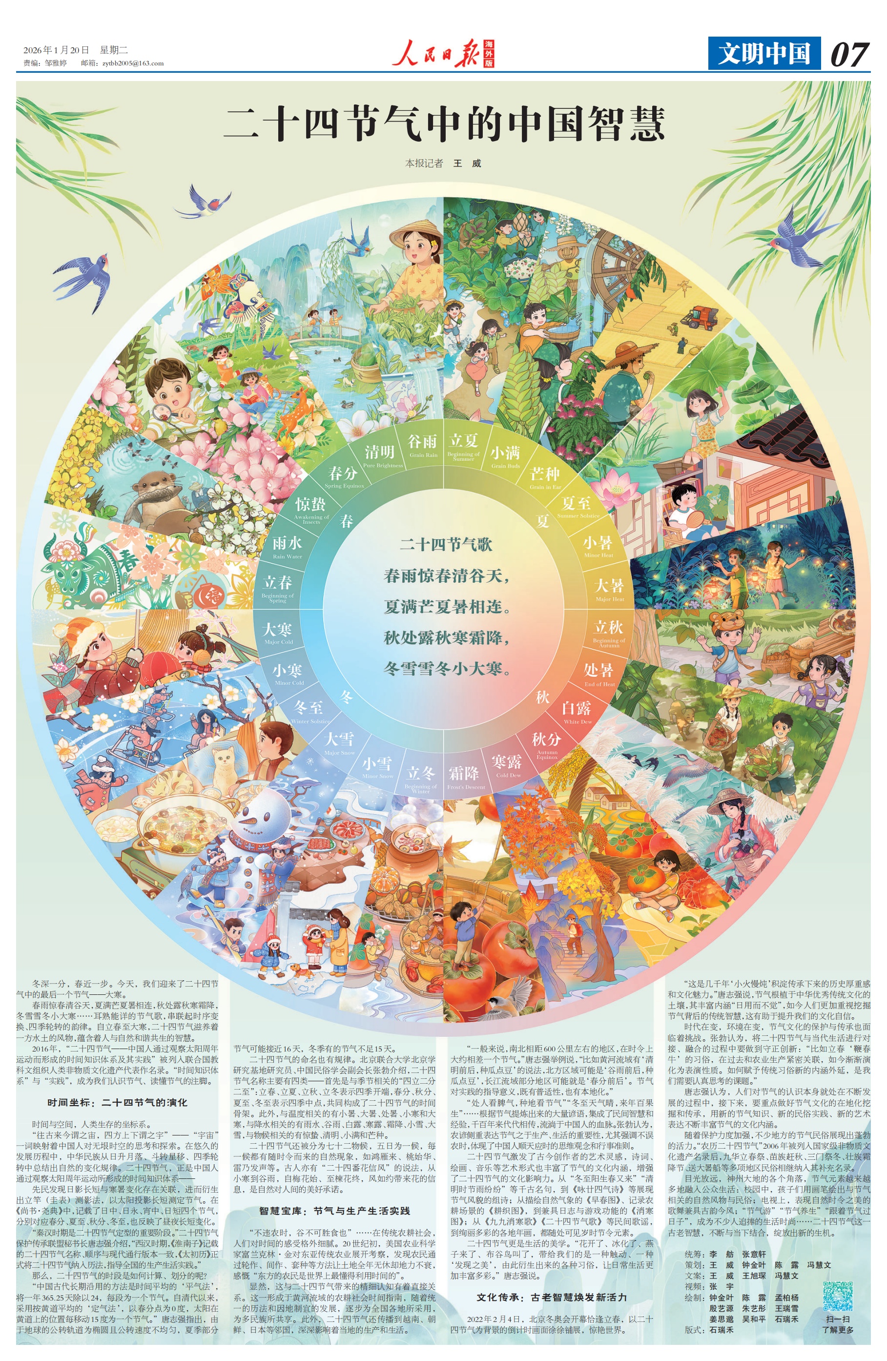 春雨惊春清谷天,夏满芒夏暑相连,秋处露秋寒霜降,冬雪雪冬小大寒……耳熟能详的节气歌,串联起时序变换、四季轮转的韵律。自立春至大寒,二十四节气滋养着一方水土的风物,蕴含着人与自然和谐共生的智慧。