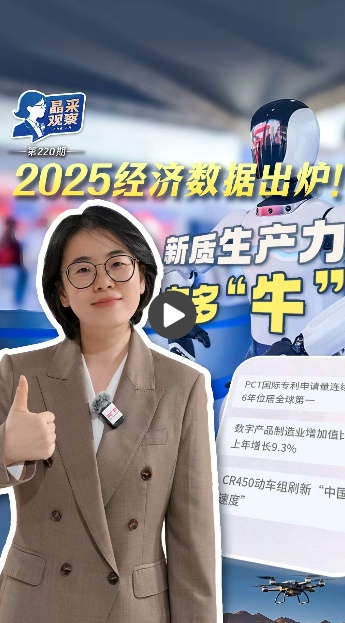 第二点,产业向新力,包括国产人工智能大模型快速发展、人工智能技术广泛应用等,数字经济引领新质生产力大踏步发展。2025年,平均每天有4.5万辆新能源汽车下线,超过5亿件快递包裹寄送,人形机器人从登上春晚舞台,到亮相机器人运动会,再到“成建制”进入工厂,这些都在积厚成势。