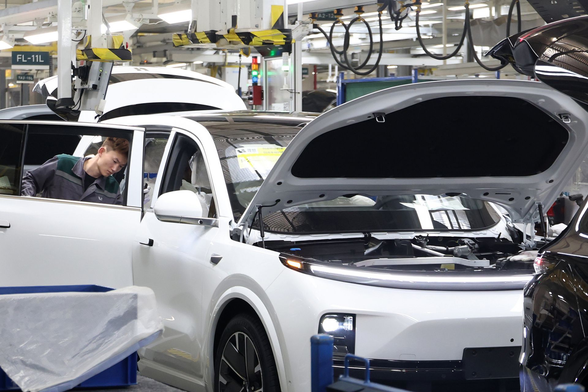 2025年4月9日,江苏常州一家汽车制造基地内的生产景象