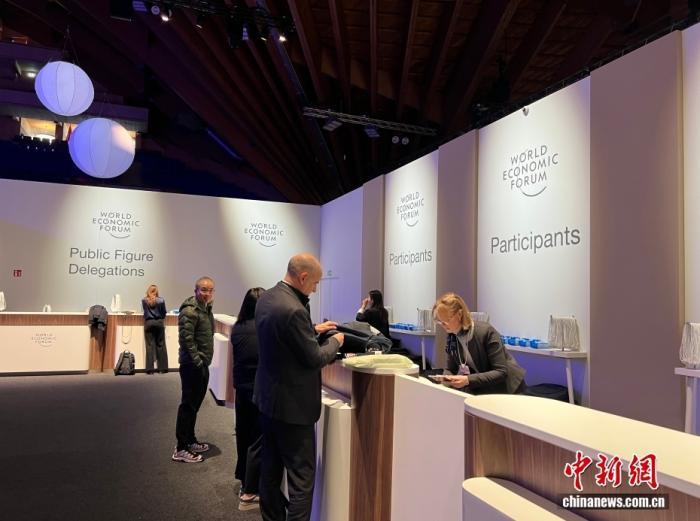 当地时间1月19日,世界经济论坛2026年年会在瑞士东部小镇达沃斯拉开帷幕。图为参会代表领取参会证件。中新社记者 马秀秀 摄