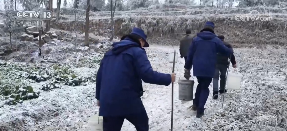 自1月19日出现低温天气以来,印江县沙子坡镇天星村已被冰雪覆盖两天,最低气温降至-5℃。该村16个村民组均位于海拔900米以上的山区,日常生活用水依靠36口水池集中供应。持续低温导致通往村民家的供水管道冻结,同时村内道路结冰,村民生活用水受到影响。得知这一情况后,当地镇村干部与消防站人员迅速组成抗凝冻应急队,前往水池取水并挑送至村民家中。