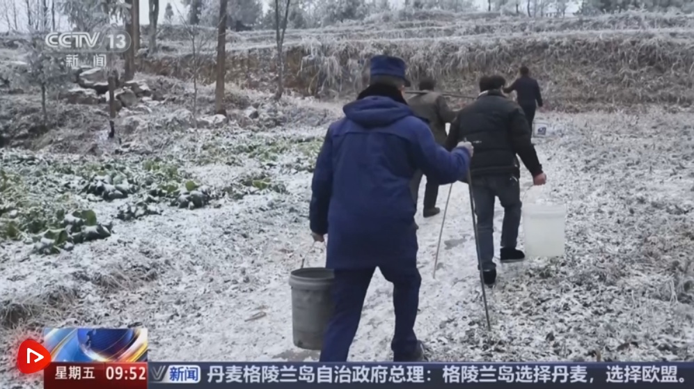 沙子坡镇专职消防员任红波表示,他们在凝冻之前就已经把水送到了水池中,但是因为现在凝冻天气来临,水管已经冻住。他们重点关注了村里面的独居老人、孤寡老人送水上门。