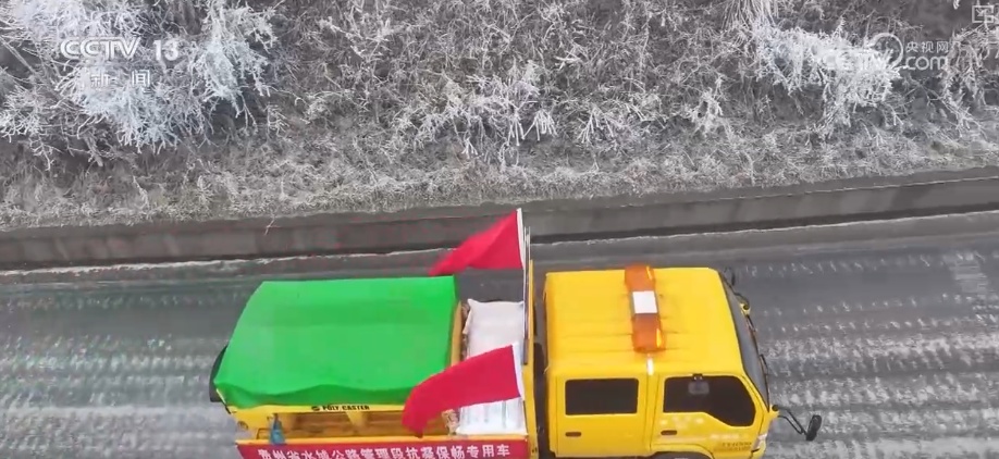 央视网消息:受本轮寒潮影响,G356国道贵州六盘水市梅花山路段气温骤降,致使路面结冰、道路湿滑。从1月21日晚上8时开始,梅花山路段实施临时交通管制,为尽快恢复道路畅通,当地多部门紧急开展除冰作业。