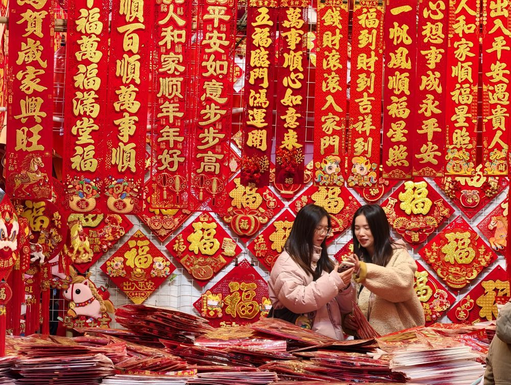 ⬆️1月25日,市民在河北省石家庄市义堂年货市场选购春节饰品。新华社发(陈其保摄)