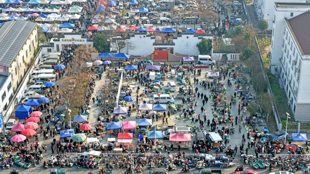 ⬆️1月25日,人们在浙江省台州市仙居县下各镇大集选购年货(无人机照片)。新华社发(王华斌摄)