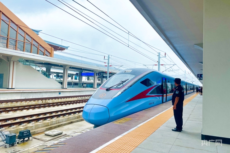 从贵阳北站发出的列车缓缓驶进荔波站(央广网记者 杨贇 摄)
