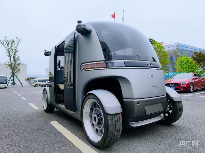 无人驾驶小巴科技感十足(央广网记者 栾小琳 摄)