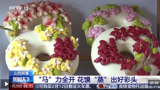 在闻喜县一家花馍工坊里,店主樊殊伯将马元素融合在了花馍的设计中,造型美观、寓意吉祥。